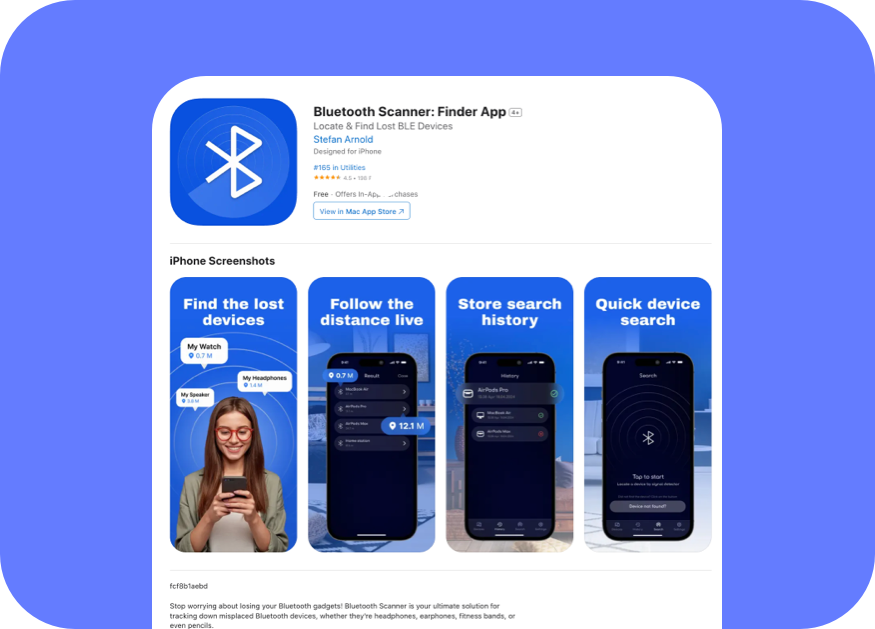 If you’ve misplaced your device, this app allows you to use your paired iPad or iPhone to help find it. Simply install the app, open it, and let it guide you to your missing device. The app works by attempting to connect wirelessly to your device’s unique signature.