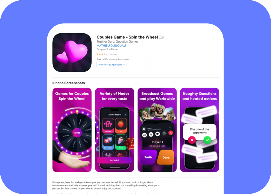 Play games, have fun and get to know your partner even better! All you need to do is forget about embarrassment and fully immerse yourself! You will definitely find out something interesting about your partner. Let fate choose for you what to do and enjoy the process!
