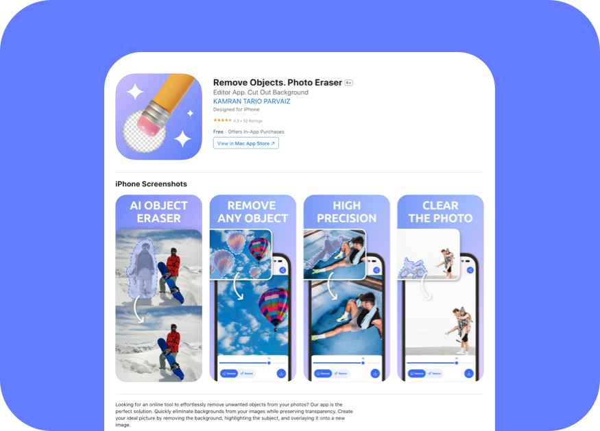 Our background remover tool allows you to focus on your photo’s subject by creating a transparent backdrop, enabling you to place your new image in various styles and settings. Whether you want to add a vibrant background or completely change your subject’s environment, this app has you covered.