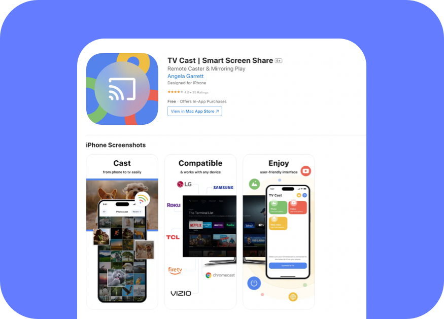 TV Cast enables you to seamlessly project photos, videos, and web content from your mobile device to your local network-connected big screen. Whether you want to relive cherished moments, watch your favorite videos, or explore the latest web content, TV Cast delivers an immersive multimedia experience in the comfort of your living room.Take your home entertainment to the next level with TV Cast – the app that empowers you to cast, share, and enjoy multimedia content like never before.